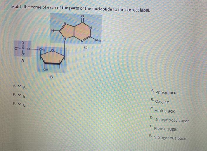 Label the parts of the nucleotide.. Nucleotide - Genome.gov A nucleotide is the basic building block of nucleic acids (RNA and DNA). A nucleotide consists of a sugar molecule (either ribose in RNA or deoxyribose in DNA) attached to a phosphate group and a nitrogen-containing base. The bases used in DNA are adenine (A), cytosine (C), guanine (G) and thymine (T). What are the Three Parts of a Nucleotide? | Albert.io Nucleotides are made up of 3 parts. The first is a distinct nitrogenous base, which is adenine, cytosine, guanine or thymine. In RNA, thymine is replaced by uracil. These nitrogenous bases are either purines or pyrimidines. Base pairs are formed when adenine forms a hydrogen bond with thymine, or cytosine forms a hydrogen bond with guanine. Phosphate Backbone - Genome.gov Each strand has a backbone made of alternating sugar (deoxyribose) and phosphate groups. Attached to each sugar is one of four bases--adenine (A), cytosine (C), guanine (G), or thymine (T). The two strands are held together by bonds between the bases, with adenine forming a base pair with thymine, and cytosine forming a base pair with guanine. Nucleoid - Wikipedia The nucleoid (meaning nucleus -like) is an irregularly shaped region within the prokaryotic cell that contains all or most of the genetic material. The chromosome of a prokaryote is circular, and its length is very large compared to the cell dimensions, so it needs to be compacted in order to fit.