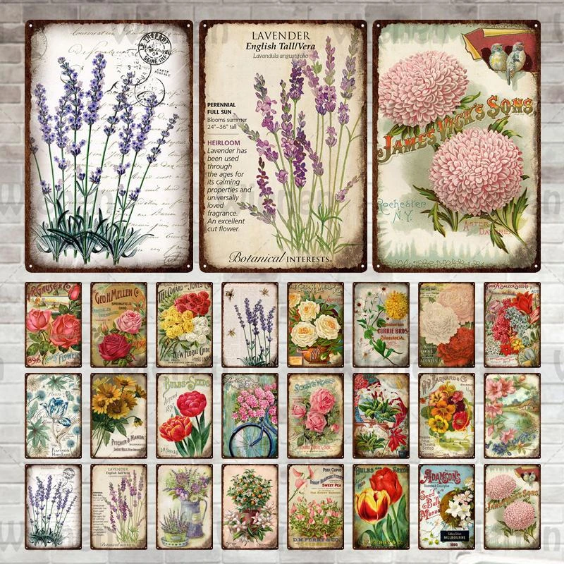 Metal Poster Sign Flowers Vintage Poster Metal Iron Plaque Lavender Sunflower Rose Daisy Botanical Garden Bar Cafe Home Decor