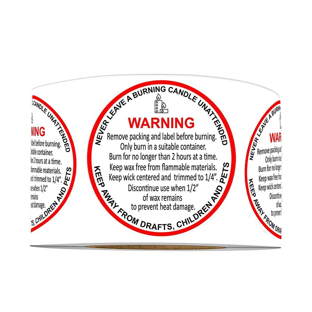 Candle Warning Labels 1.25 Inch - CandleScience Candle Making Supplies ... Warning Labels 1.25 Inch Choose a Variant 100 pc Roll $3.01 $0.03 /pc . 1000 pc Roll $21.69 $0.02 /pc 10+ $19.35 $0.02 /pc . Ships from West Coast. Estimated: East Coast 9/6 Qty. Add to Cart Warning Labels 1.25 Inch has a 5 of 5 Stars Rating ...