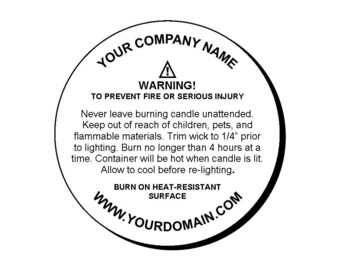 Standard and Custom Candle, Incense and Product Caution Warning Labels This label contains a standard candle warning, split in the middle, with enough room in the center for a maximum of 3 lines of your custom text. Our example shows your Candle Fragrance Name, Website Address and phone number OR Address if desired. The more we have to fit in that space the smaller and harder it gets to read.