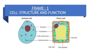 Cell structure and function - SlideShare Aug 20, 2018 · Cell structure and function 1. CELLThe Fundamental Unit Of Life 2. What is Cell? Cell is the basic Structural and functional unit of living organisms. In other words, cells make up living things and carry out activities that keep a living thing alive. 3. Cell Structure | SEER Training - National Cancer Institute All materials within a cell must have access to the cell membrane (the cell's boundary) for the needed exchange. The cell membrane is a double layer of phospholipid molecules. Proteins in the cell membrane provide structural support, form channels for passage of materials, act as receptor sites, function as carrier molecules, and provide ...