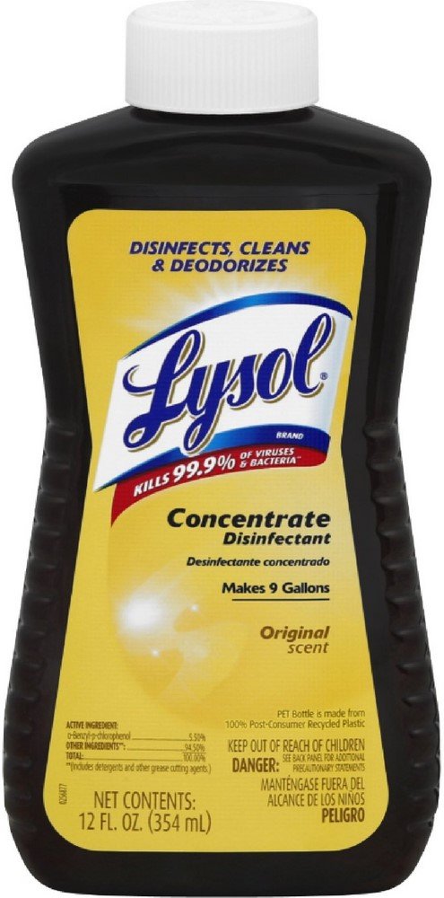 SmartLabel - LYSOL® LYSOL® Brand Concentrate Disinfectant - Original LYSOL® Brand Concentrate Disinfectant - Original. Disinfectant Liquid. -19200-02201-9. 12.0 fluid ounces plastic bottle. Ingredients & Contents. Health, Safety & Environment. Usage & Handling. Features & Benefits. Company, Brand & Sustainability.