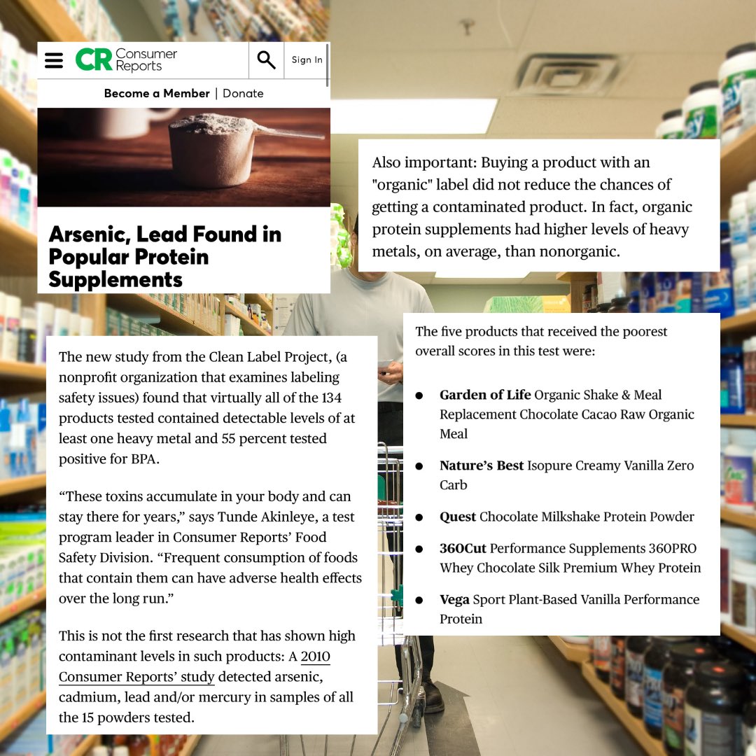 Study: Protein Powders Have Lead And Arsenic - Women's Health The Clean Label Project, a non-profit organization that evaluates ingredient quality in products, tested 134 protein powders ranked by Nielsen and Amazon as the most popular, from 52 different brands.