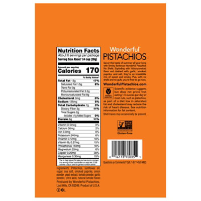 Wonderful Pistachios, No Shells, Roasted and Lightly Salted Pistachios, No Shells, Roasted and Lightly Salted About 6 Serving Per Container Amount Per Serving % Daily Value* *Percentage Daily values are based on a 2,000 calorie diet.Your Daily values may be higher or lower depending on your calorie needs we recommend Wonderful No Shells Roasted and Salted Pistachios, 6 oz $7.19 each ($1.20/oz)