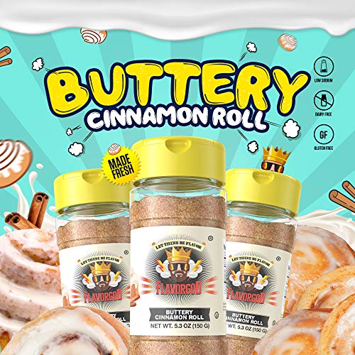 Flavor God Buttery Cinnamon Roll Seasoning | 5.3oz Bottles | Healthy Seasonings | Great for Added Flavor | No Calories, No MSG, No Fat, No Gluten, ...