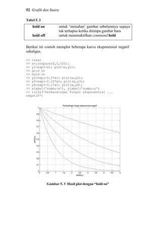 MATLAB Plots (hold on, hold off, xlabel, ylabel, title, axis & grid ... The formatting commands are entered after the plot command. In MATLAB the various formatting commands are: (1). The xlabel and ylabel commands: The xlabel command put a label on the x-axis and ylabel command put a label on y-axis of the plot. The general form of the command is: xlabel ('text as string') ylabel ('text as string') How to Implement Matlab Plot Colors with Examples - EDUCBA How to Set Color of Scatter Plots? For this example, we will scatter plot of red color Syntax: a = linspace (0, 2*pi,100) b = cos (a) + rand (1, 100) scatter (a, b, 'r') [Defining 100 equally distant points] [Defining our cos function] [Plotting our scatter plot]