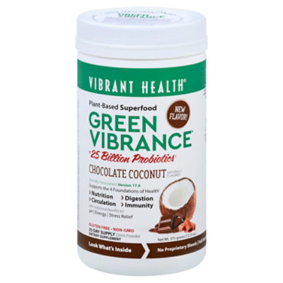 Green Vibrance Grass (25.61 Oz.) | Vibrant Health | The ... Green Vibrance promotes and supports healthy functioning of the four major foundations of your health — nutrition, digestion, circulation, and immunity. These ... Vibrant Health Green Vibrance Superfood Powder - H-E-B Vibrant Health Green Vibrance Superfood Powder ; Chromium 80mcg, 229% ; Dandelion Root 4:1 Extract 50mg ; Vitamin A (90% as Beta Carotene) 1.25mg, 139%.